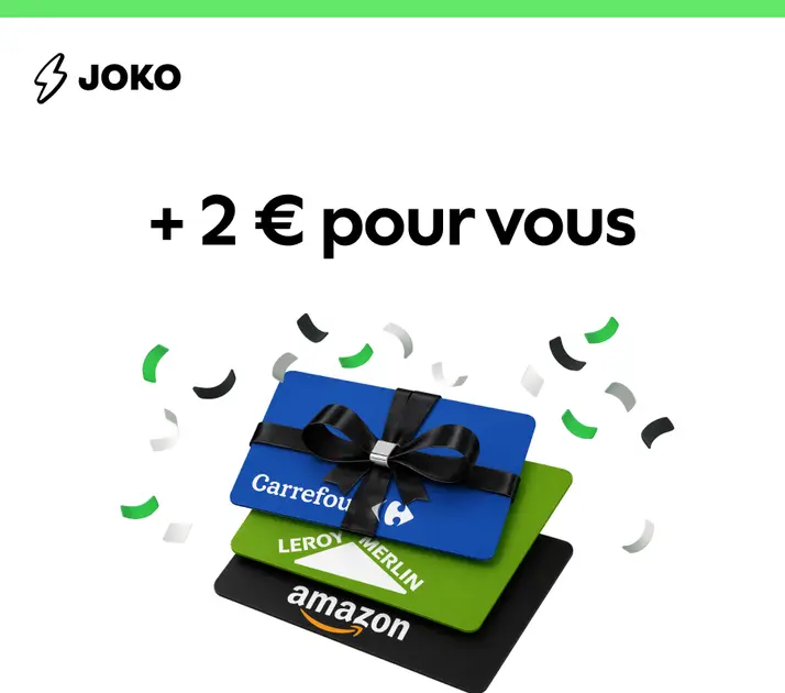 Dans la foulée de Naomi hier, Joko applique également un bonus de 2€ sur ses cartes cadeaux bonifiées pendant 7 jours.